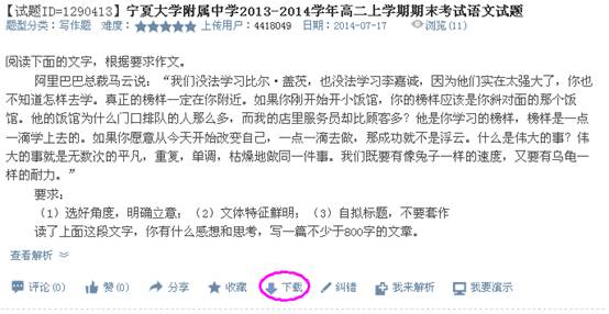 页面中每道试题的下部均有下载按钮,若需要下载试题,请点击此按钮。